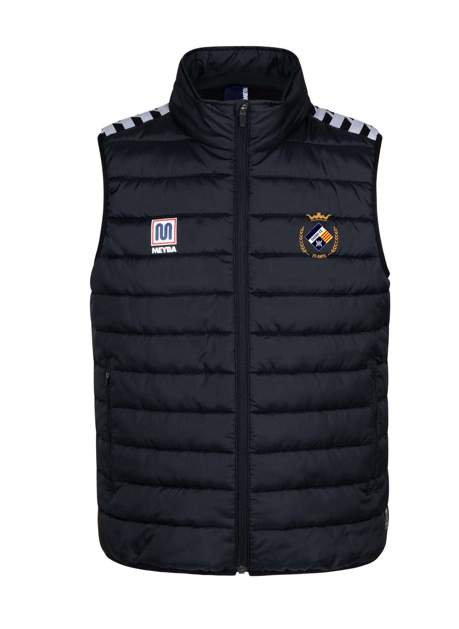 Armilla plumall Meyba Clàssic. Edició especial amb blau marí, peça imprescindible per als amants de l'esport i el confort. Disseny modern i funcional, ideal per al dia a dia a l'exterior, comode i calenta per a un estil esportiu casual. Al lateral, destaca una banda amb el nom de la marca en blanc, oferint un contrast elegant i dinàmic.