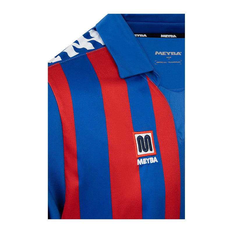 Aquesta samarreta exclusiva MEYBA uneix la passió pel futbol i la identitat històrica dels Almogàvers Garrotxins. Amb un disseny inspirat en els colors clàssics blau i grana a franges verticals, incorpora l’escut personalitzat amb el guerrer almogàver, símbol de força, valentia i orgull del nostre territori.